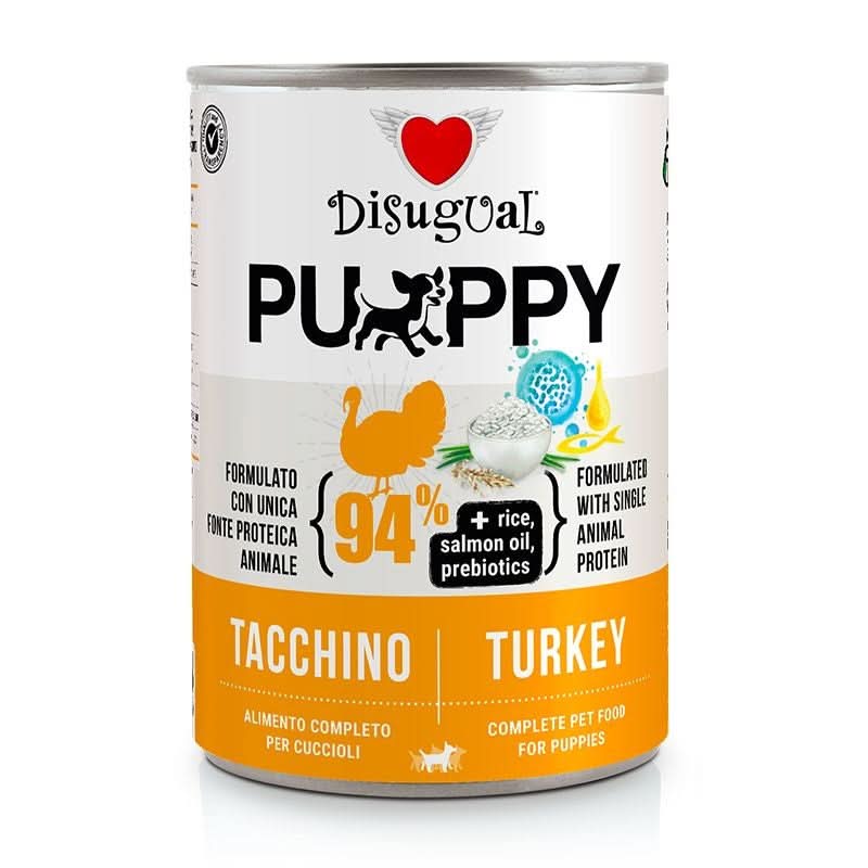 Disugual Cane Puppy Monoproteico Tacchino Lattina 400 gr è l'alimento ideale per cuccioli in fase di crescita. Realizzato con ingredienti selezionati e di alta qualità, questa ricetta monoproteica offre un sostegno nutrizionale completo per i tuoi cuccioli. Il tacchino, leggero e digeribile, è l'unica fonte proteica, contribuendo a una dieta sana e bilanciata. Questo prodotto è stato studiato per favorire lo sviluppo muscolare e il benessere generale del tuo amico a quattro zampe.